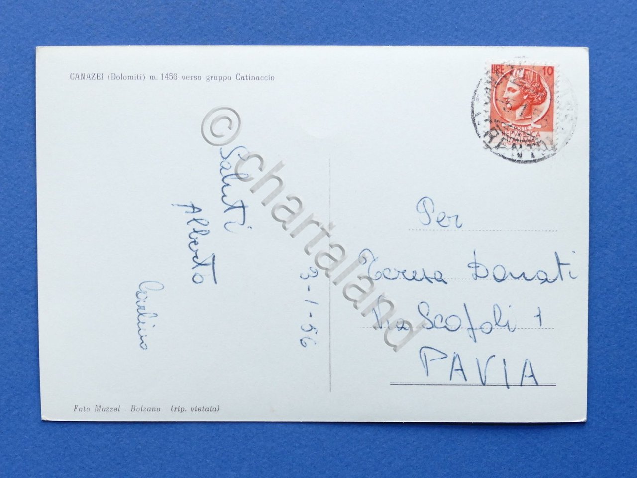 Cartolina Canazei - Verso gruppo Catinaccio - 1956 1956 Cartolina formato grande - viaggiata Condizioni buone, come da foto Per appassionati, studiosi e collezionisti