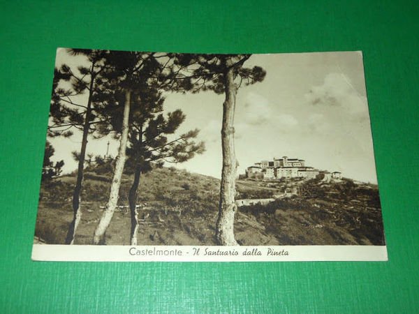 Cartolina Castelmonte - Il Santuario dalla Pineta 1951