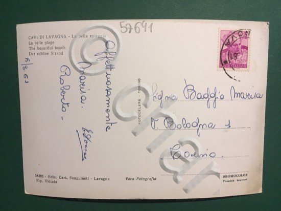 Cartolina Cavi Di Lavagna - La Bella Spiaggia - 1961