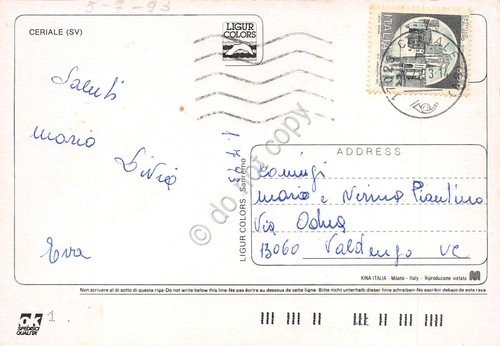 Cartolina Ceriale vedute 1993 (Savona)