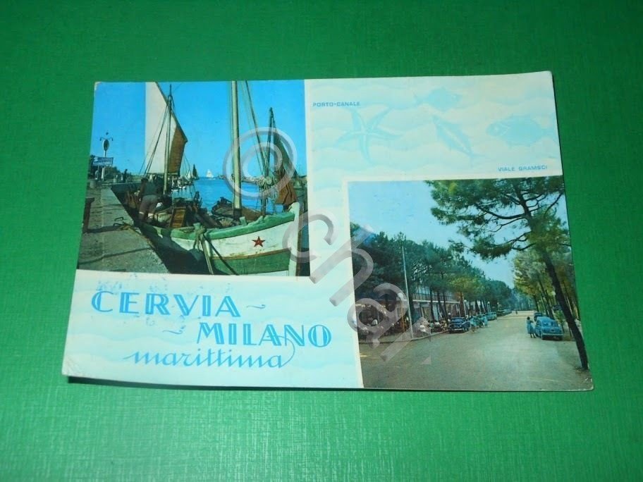 " *** Cartolina Cervia - Milano Marittima - Porto Canale e Viale Gramsci. La cartolina è viaggiata. Datata 1957. Formato grande. Rif. numero 15525 Per appassionati, studiosi e collezionisti
