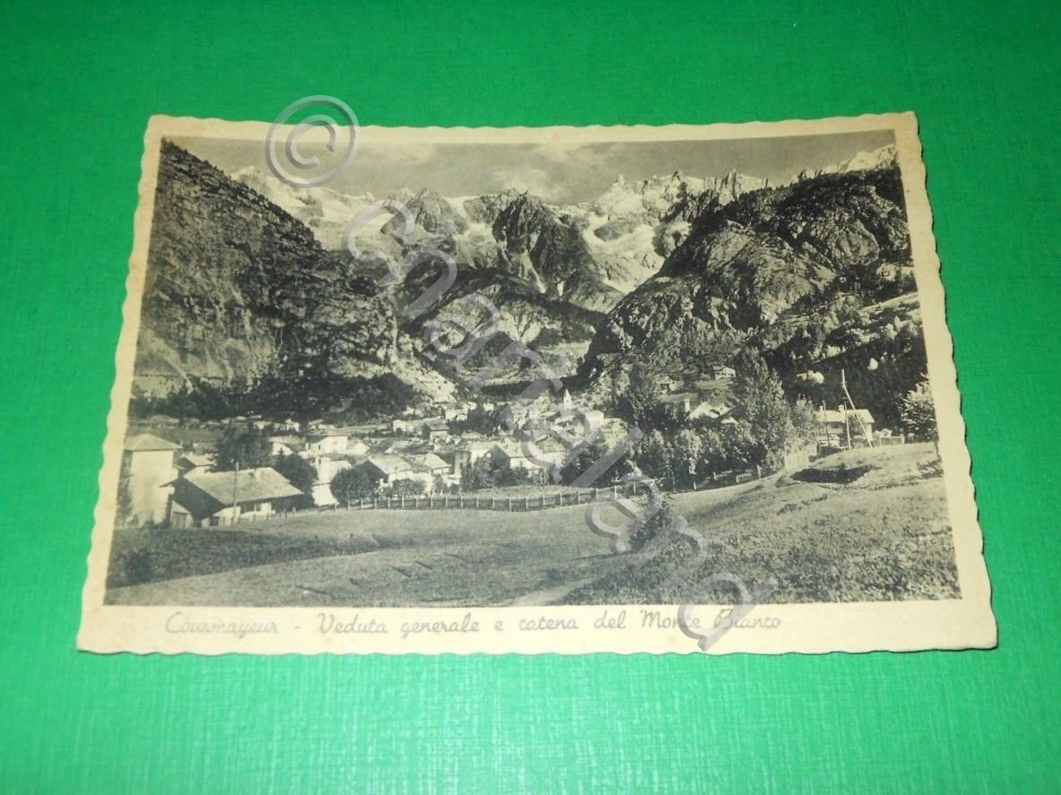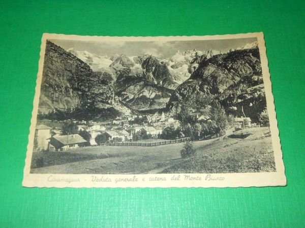 Cartolina Courmayeur - Veduta generale e catena del Monte Bianco 1940 ca | Tarjetas postales |