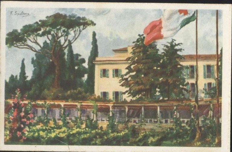 CARTOLINA CROCE ROSSA ITALIANA istituto Cesare Battisti illustrata da Spoltona