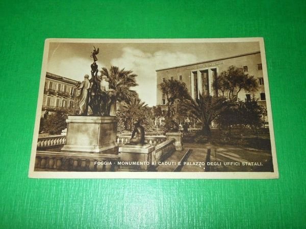 Cartolina Foggia - Monumento ai Caduti e Palazzo degli Uffici Statali 1930 ca
