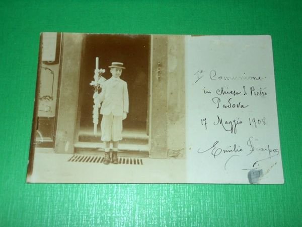 Cartolina Foto d' epoca della 1^ Comunione in chiesa S. Pietro - Padova 1908.
