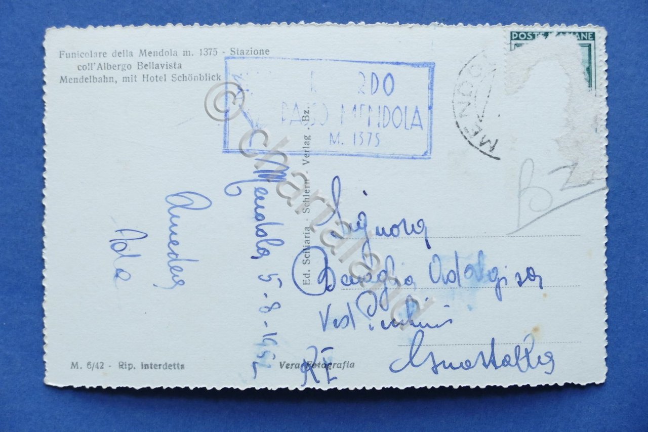 Cartolina Funicolare della Mendola - Stazione con Albergo Bellavista - 1952 1952 Cartolina formato piccolo - viaggiata Condizioni buone, come da foto Per appassionati, studiosi e collezionisti
