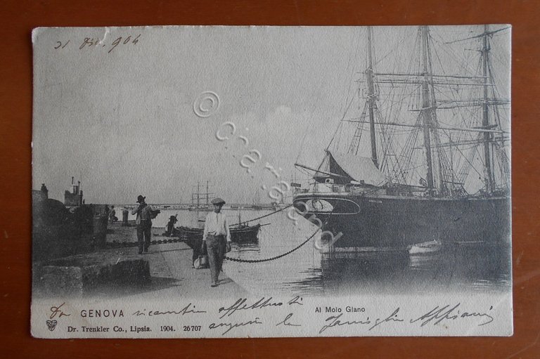 Cartolina Genova - Al Molo Giano - 1904