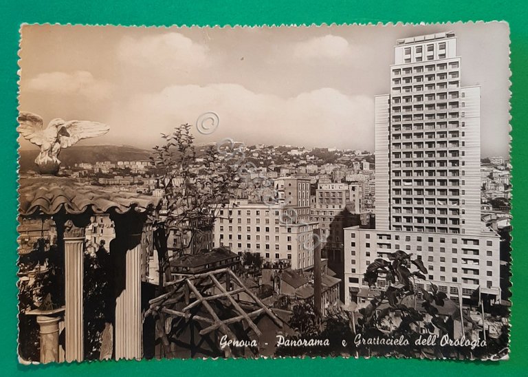 Cartolina Genova - Panorama - Grattacielo dell' Orologio - 1950