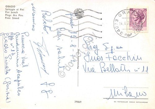 Cartolina Grado spiaggia ai Pini 1972 (Gorizia)