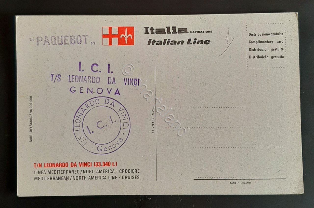 Cartolina I. C. I - T/S Leonardo da Vinci - Genova - 1960