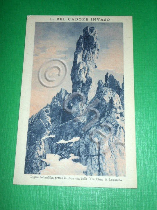 " *** Cartolina Il bel Cadore invaso - Guglia dolomitica presso la Capanna delle Tre Cime di Lavaredo. La cartolina non è viaggiata. Databile 1919 ca. Formato piccolo. Per appassionati, studiosi e collezionisti