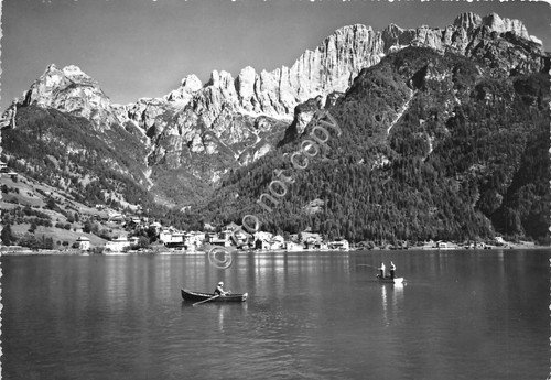 Cartolina Lago di Alleghe Monte Civetta barca pescatore Foto Ghedina 1965