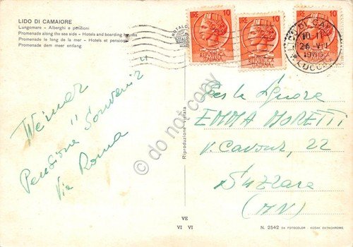 Cartolina Lido di Camaiore Lungomare Alberghi animata auto d'epoca 1965