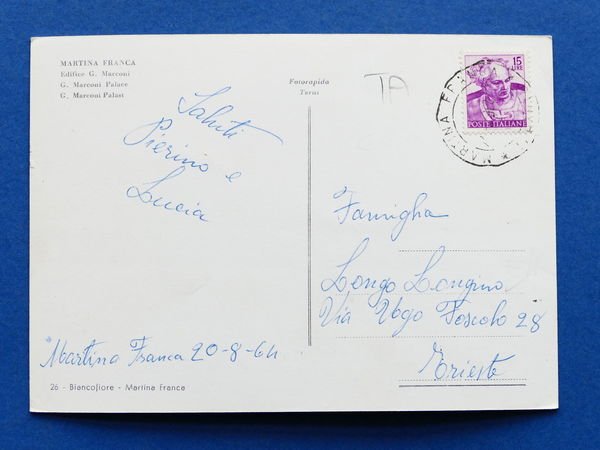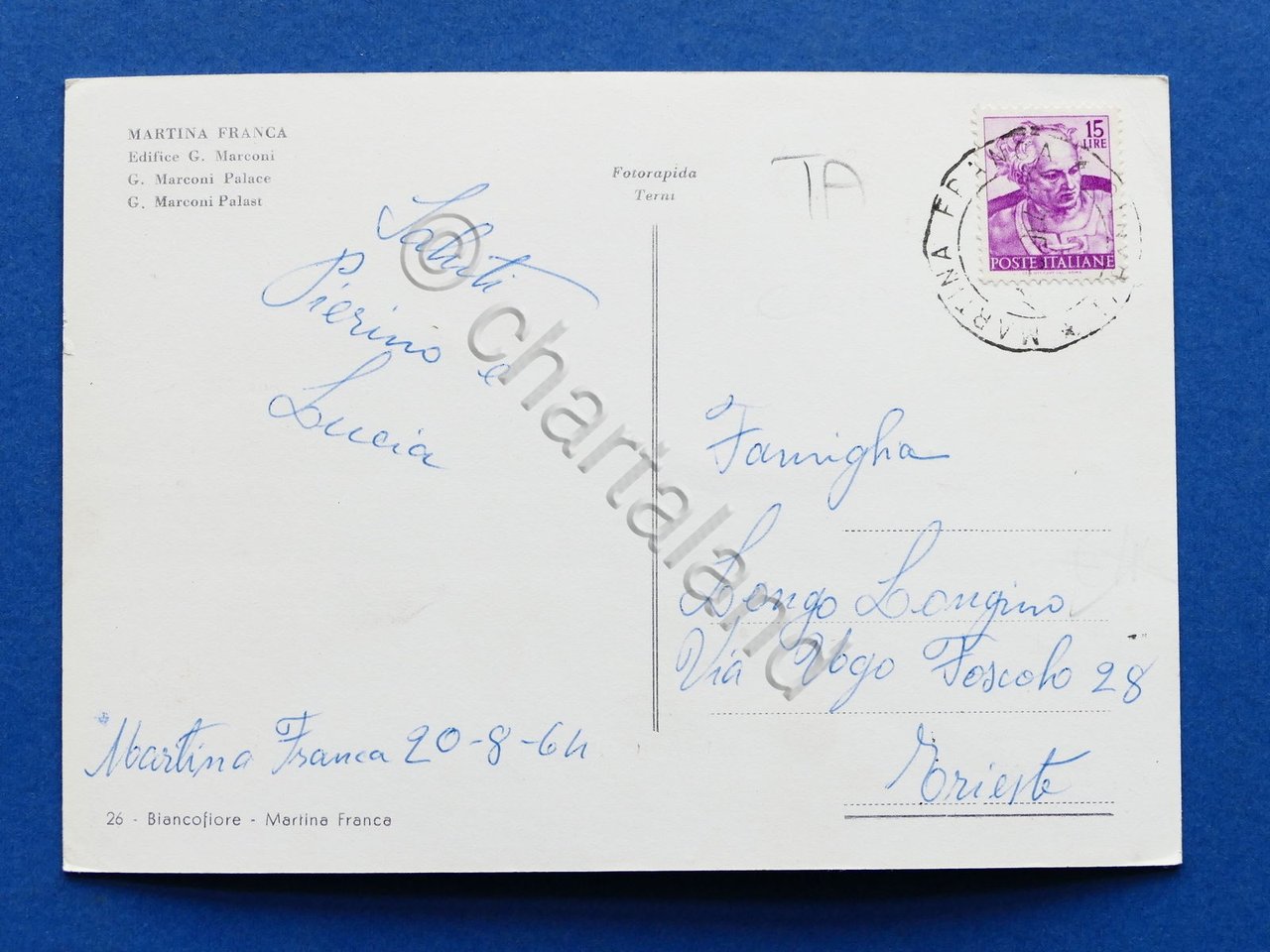 Cartolina Martina Franca - Edificio G. Marconi - 1964 1964 Cartolina formato grande - viaggiata Condizioni molto buone, come da foto Per appassionati, studiosi e collezionisti