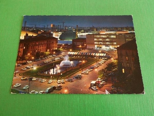 Cartolina Milano - Piazza Giulio Cesare ( notturno )