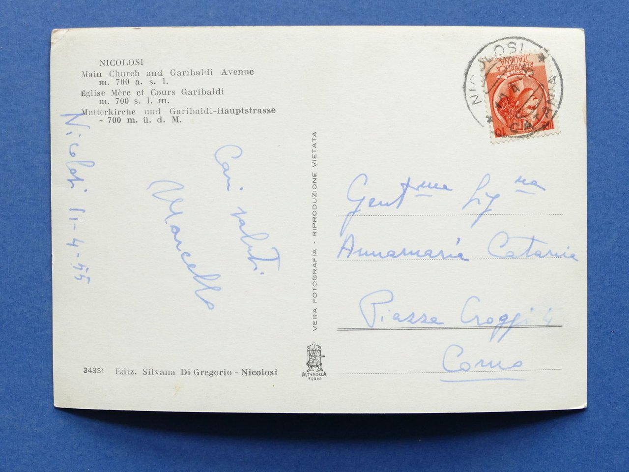 Cartolina Nicolosi - Chiesa Madre e Corso Garibaldi - 1955 1955 Cartolina formato grande - viaggiata Condizioni buone, come da foto Piccola piega all'angolo superiore destro Per appassionati, studiosi e collezionisti