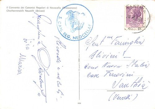 Cartolina Novercella Bressanone Convento Canonici Regolari panorama aereo 1971