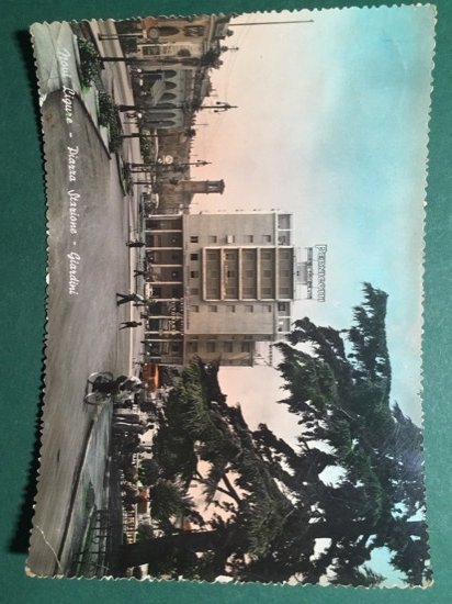 Cartolina Novi Ligure - Piazza Stazione - Giardini - 1954