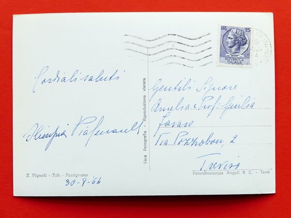 Cartolina Passignano sul Trasimeno - Il Castello dal Lago - 1964 1964 Cartolina formato grande - viaggiata Condizioni buone, come da foto Per appassionati, studiosi e collezionisti