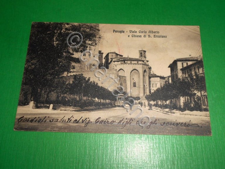 Cartolina Perugia - Viale Carlo Alberto e Chiesa di S. Ercolano 1934.