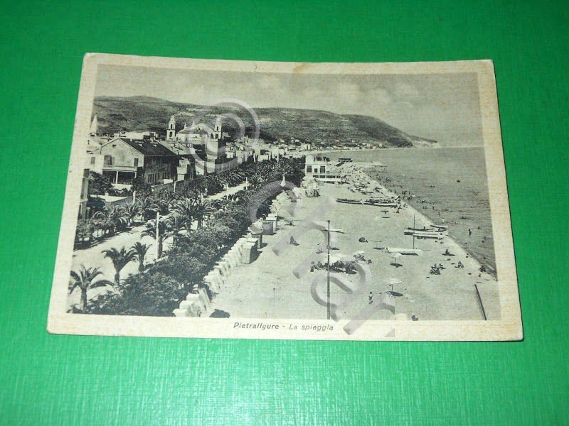 Cartolina Pietra Ligure - La spiaggia 1950 ca