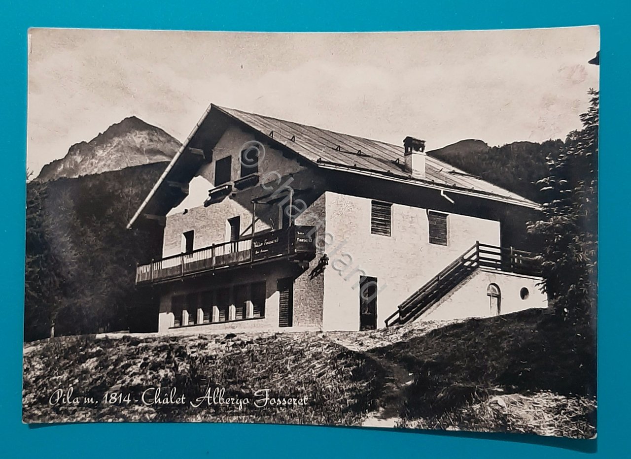 Cartolina Pila m. 1814 - Chalet Albergo Fasseret - 1952