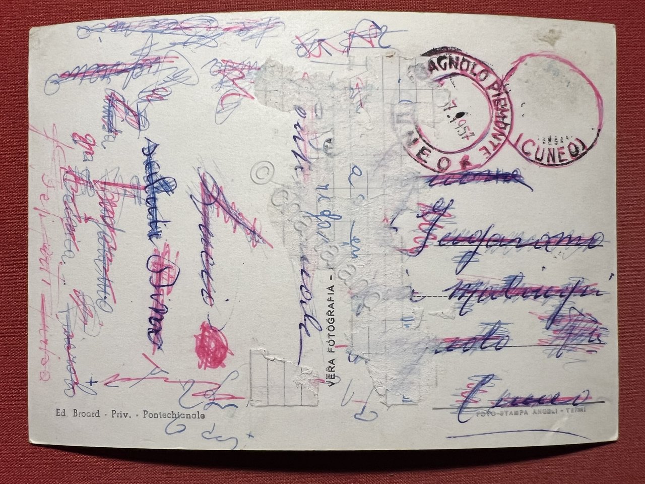 Cartolina Pontechianale - Castello - Panorama e Terrazzo - Albergo Miralago 1957