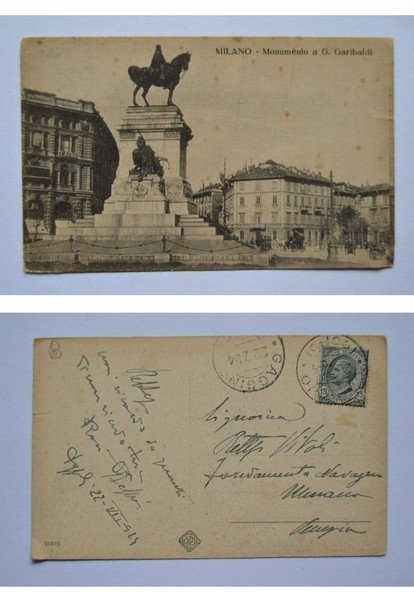 Cartolina / postcard MILANO - Monumento a Giuseppe Garibaldi. 1924