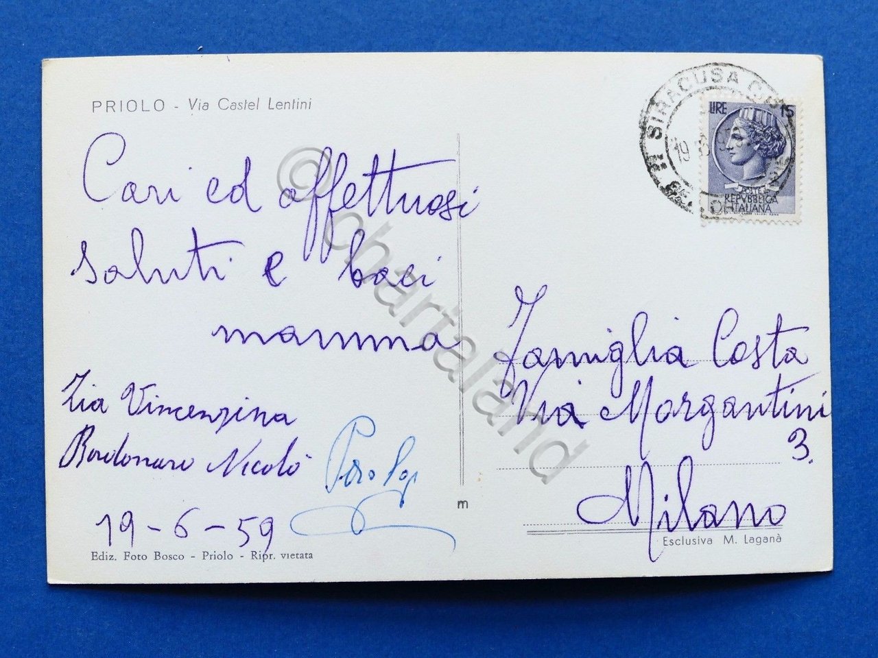 Cartolina Priolo - Via Castel Lentini - 1959 1959 Cartolina formato grande - viaggiata Condizioni buone, come da foto Per appassionati, studiosi e collezionisti