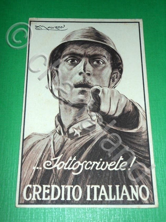 Cartolina Propaganda Militare - Sottoscrivete! - illustratore Mauzan 1917 ca