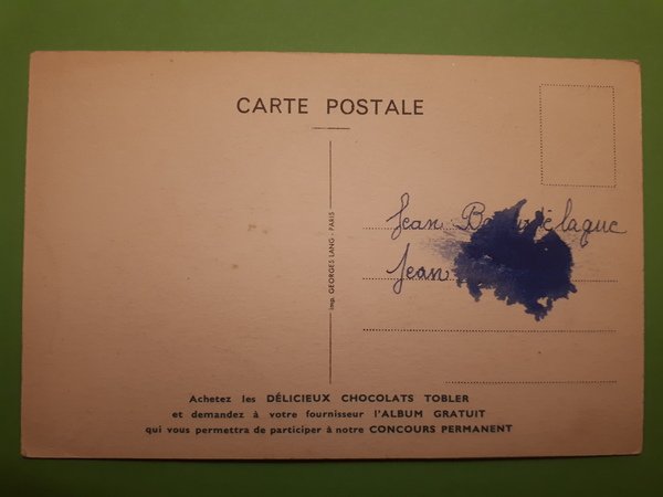 Cartolina pubblicità Cioccolato Tobler - Voiture de course Ferrari - 1950 ca.