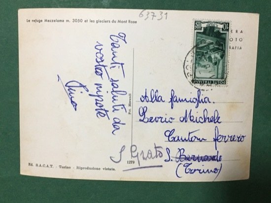 Cartolina Rifugio Mezzalama e Ghiacciai del Rosa - 1953