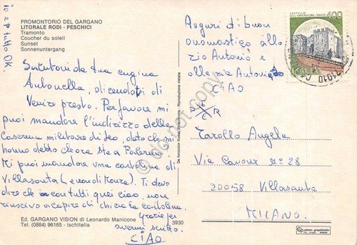 Cartolina Rodi Peschici Gargano al Tramonto (Foggia)