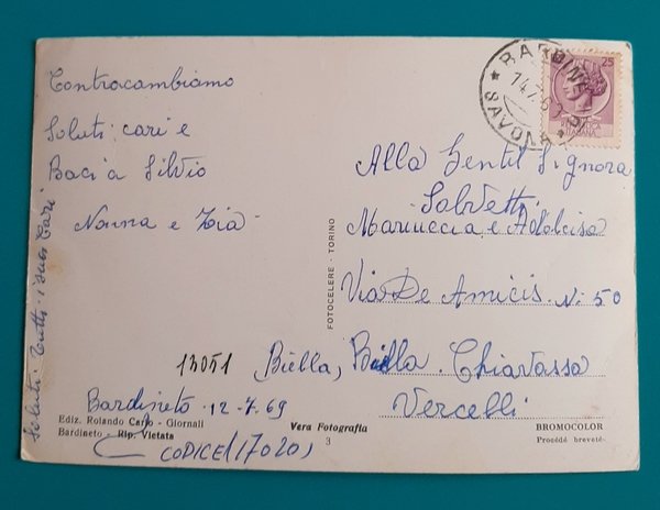 Cartolina Saluti da Bardineto - Panorama e Monte Carino - 1969