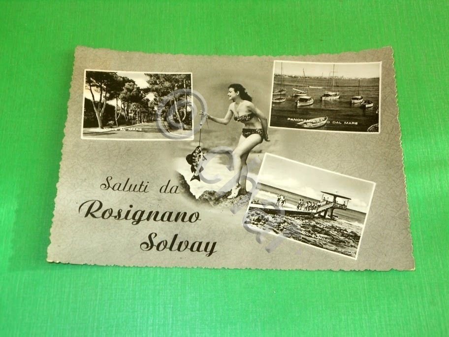 " *** Cartolina Saluti da Rosignano Solvay - Vedute diverse. La cartolina è viaggiata. Datata 1956. Formato grande. Rif. numero 22294 Per appassionati, studiosi e collezionisti