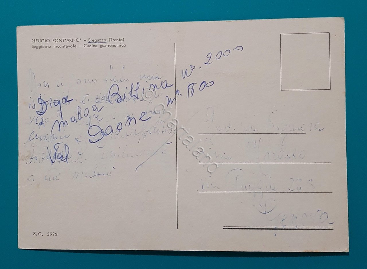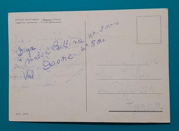 Cartolina Saluti dal Rifugio Pont' Arno - Breguzzo - Trento - 1979