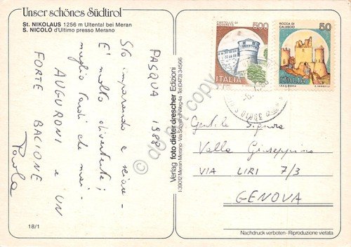 Cartolina San Nicolò d'Ultimo Merano panorama 1988