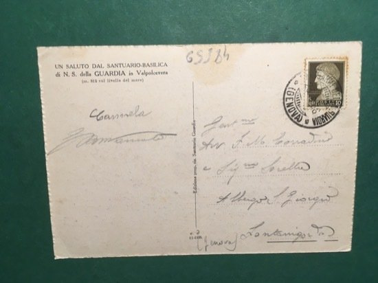 Cartolina Santuario - Basilica di N.S della Guardia sul Monte Figogna - 1966