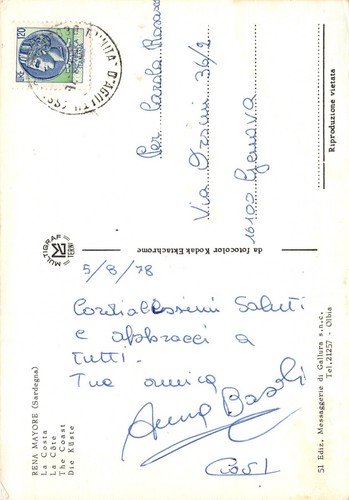 Cartolina Sardegna Rena Mayore la costa 1978 (Sassari)
