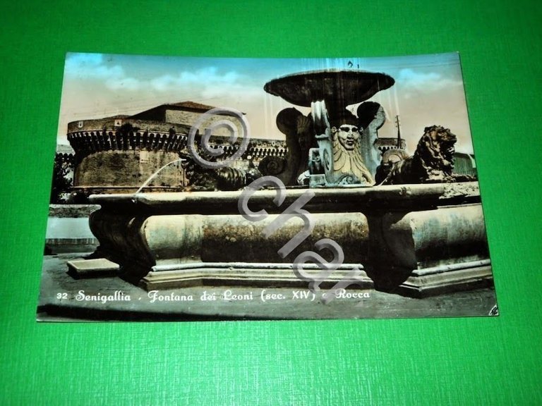 " *** Cartolina Senigallia - Fontana dei Leoni e Rocca. La cartolina è viaggiata. Datata 1958. Formato grande. Per appassionati, studiosi e collezionisti