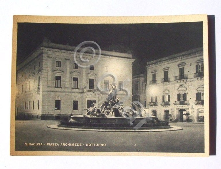 " *** Cartolina raffigurante Siracusa - Piazza Archimede - notturno. La cartolina non è viaggiata. Databile 1950 ca. Per appassionati studiosi e collezionisti