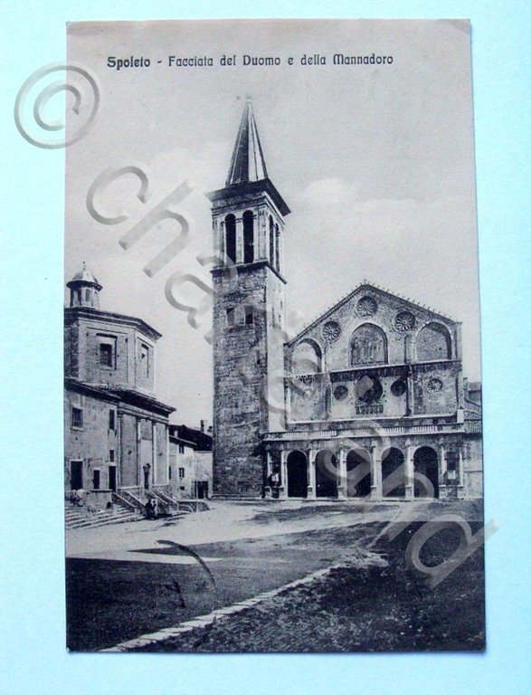 Cartolina Spoleto - Facciata del Duomo e Mannadoro 1913.