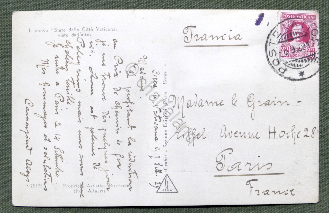 Cartolina Stato della Ciità Vaticana visto dall'alto - 1929
