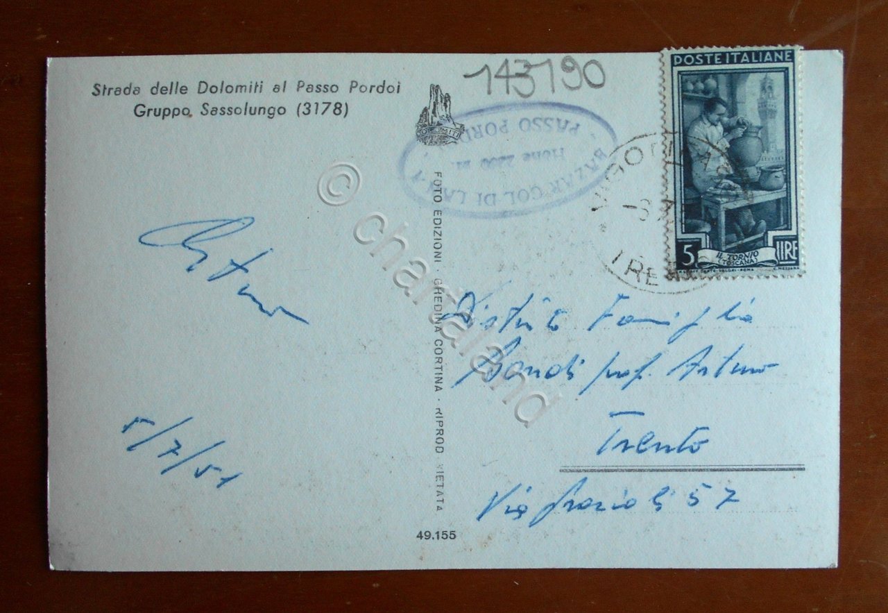 Cartolina Strada delle Dolomiti al Passo Pordoi - Gruppo Sassolungo - 1951