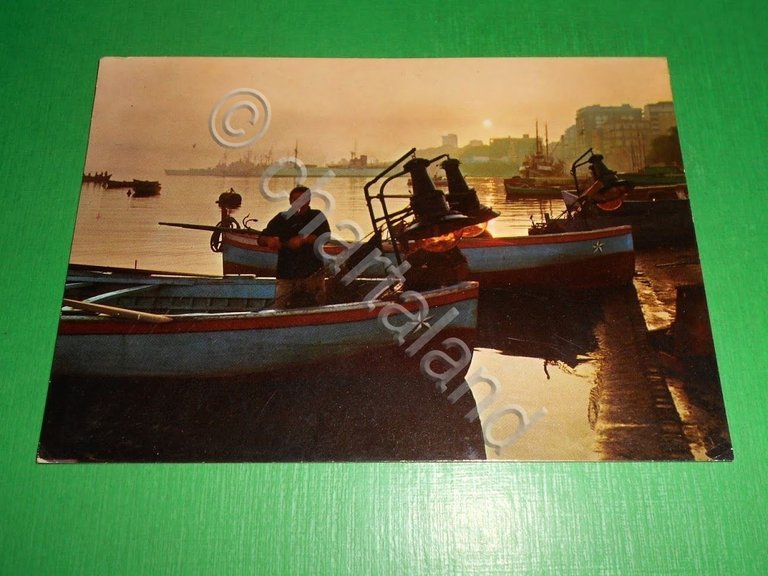 Cartolina Taranto - Rientro dalla pesca in Mar Piccolo 1969