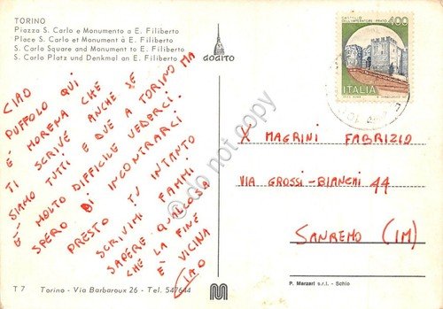 Cartolina Torino Piazza San Carlo e Monumento a E. Filiberto