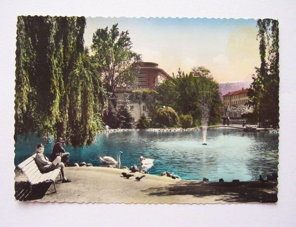 " *** Cartolina raffigurante Trento - Hotel Trento e Bristol dal laghetto. La cartolina è viaggiata. Datata 1955. Per appassionati studiosi e collezionisti