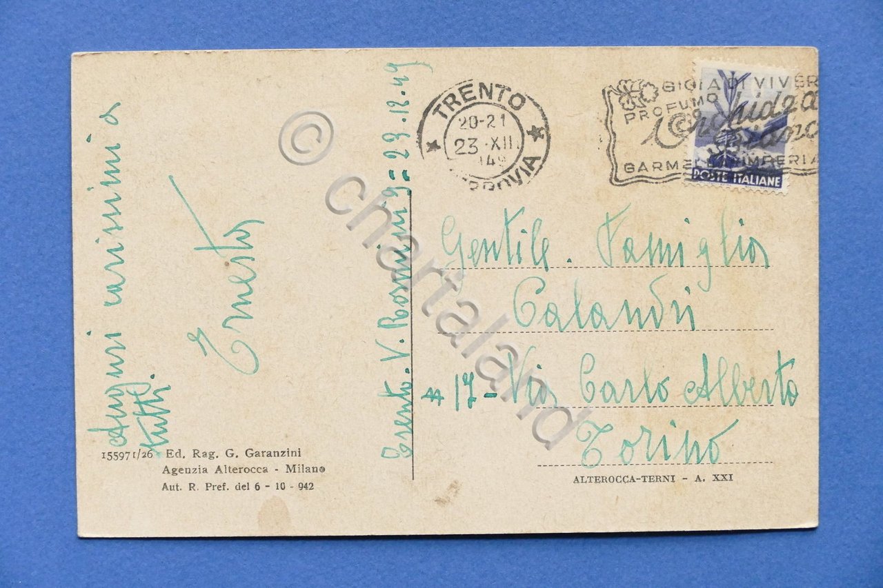 Cartolina Trento - Piazza Vittorio Emanuele III - Torre di Piazza - 1949 1949 Cartolina formato piccolo - viaggiata Condizioni buone, come da foto Per appassionati, studiosi e collezionisti