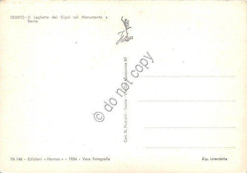 Cartolina Trento Lago dei Cigni e Monumento a Dante