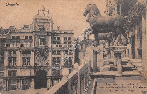 Cartolina Venezia quattro cavalli in bronzo